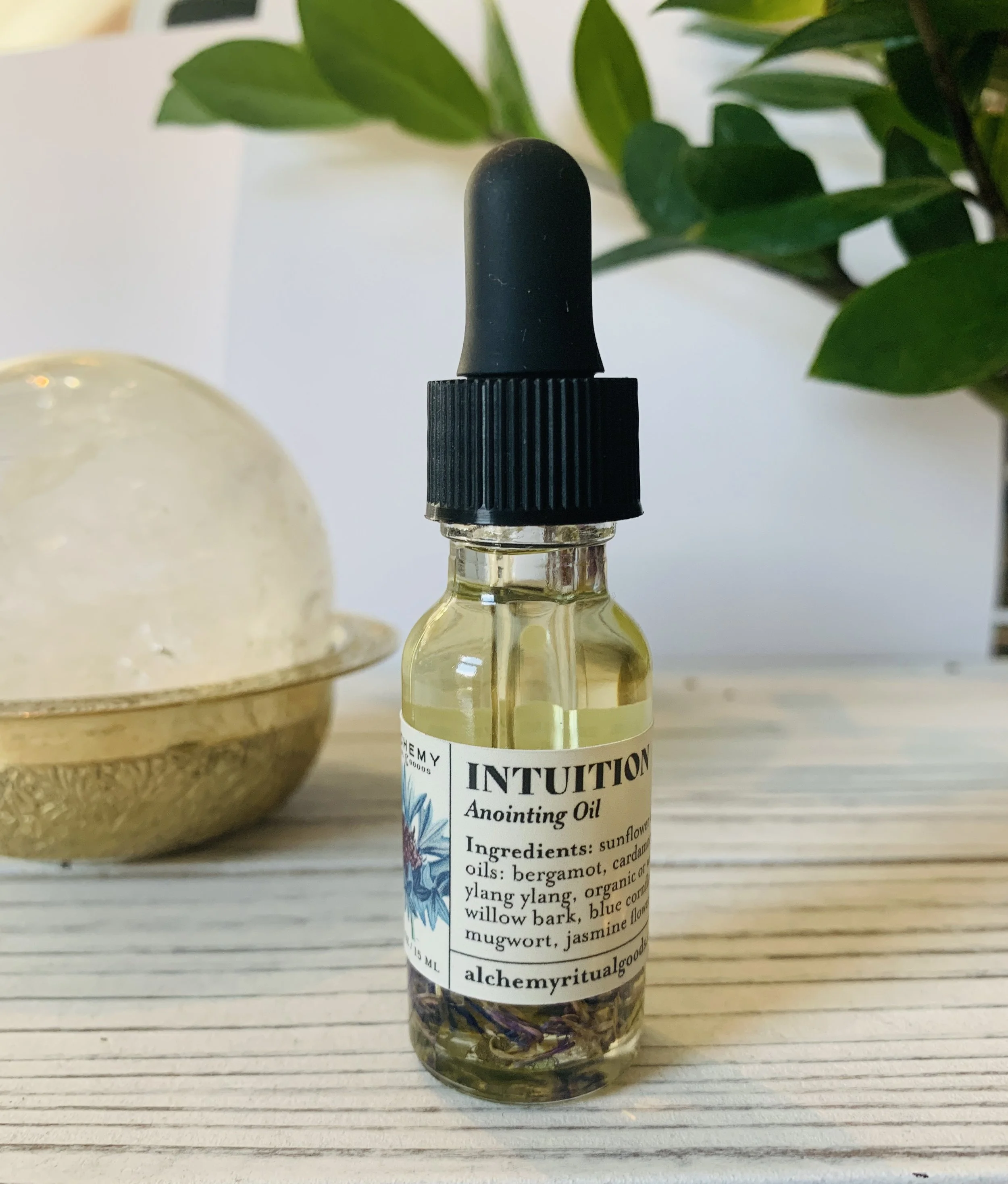 Our Intuition Anointing Oil is made in-house with love and prayer as an aid to thin the veil, connect to your higher self and enhance your inner sight.